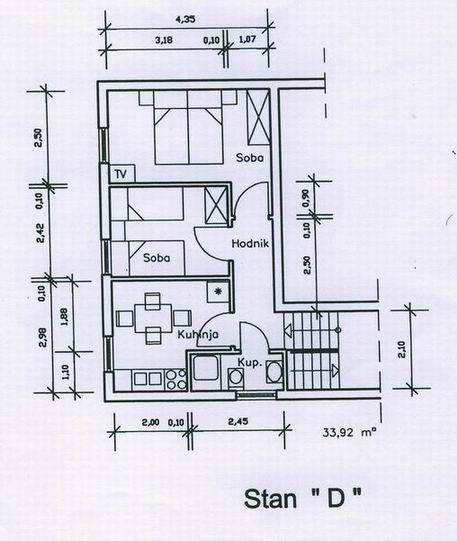 Apartment D is in the new house on the second level. It consists of two bedrooms – one room with two separate beds and another with a twin bed, a kitchen and a bathroom. The apartment is air-conditioned and is ideal for the accommodation of 4 persons. Free internet.
