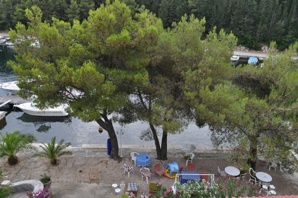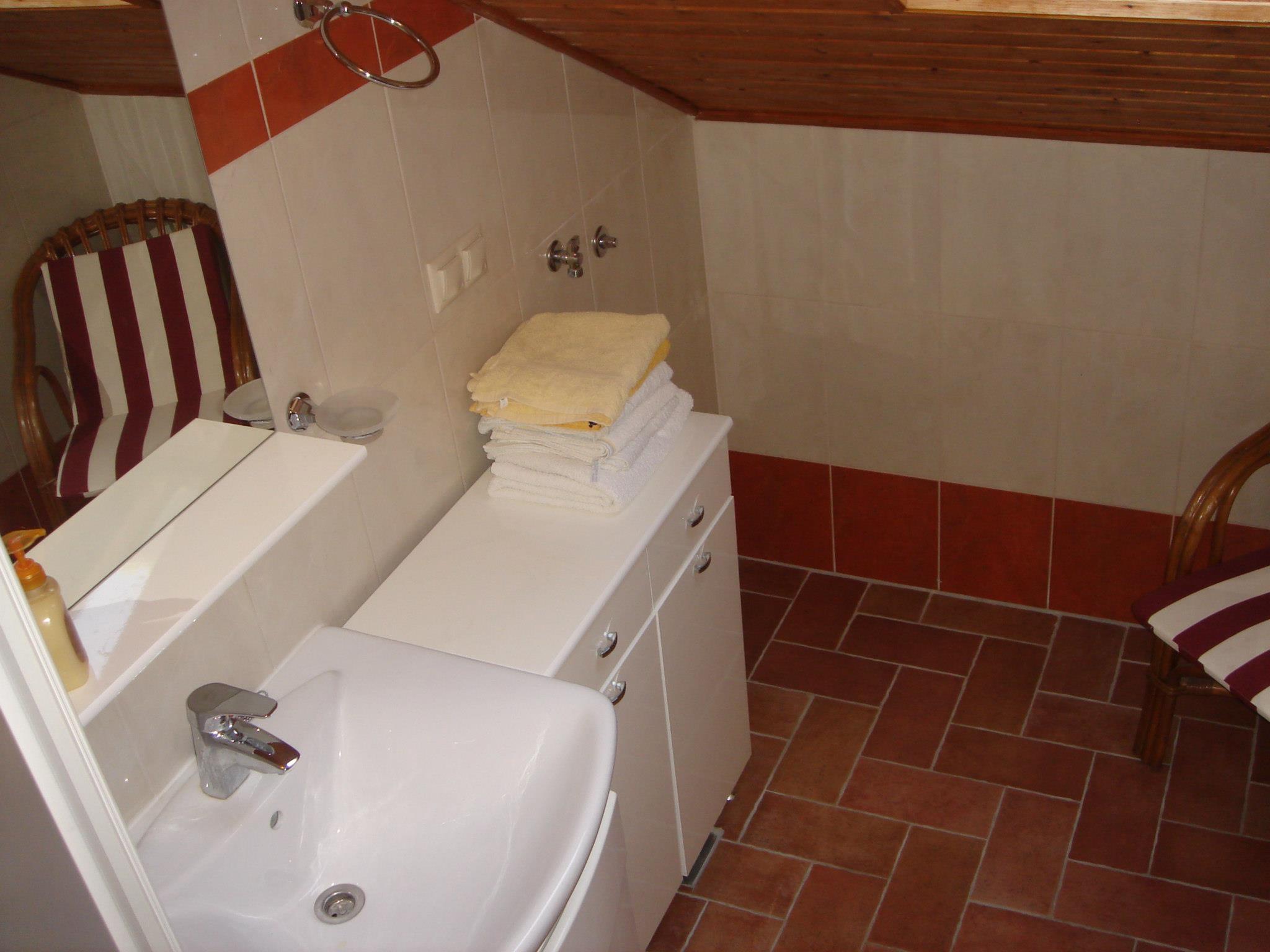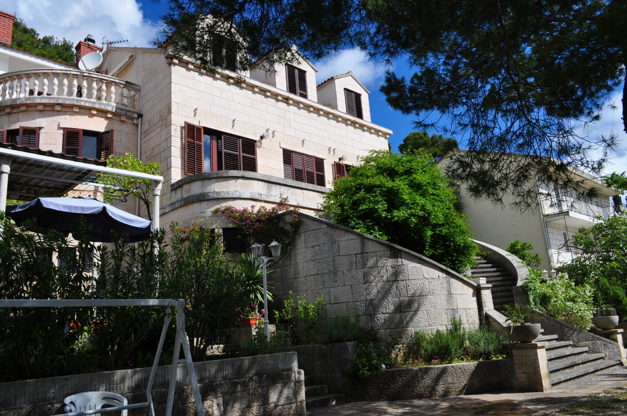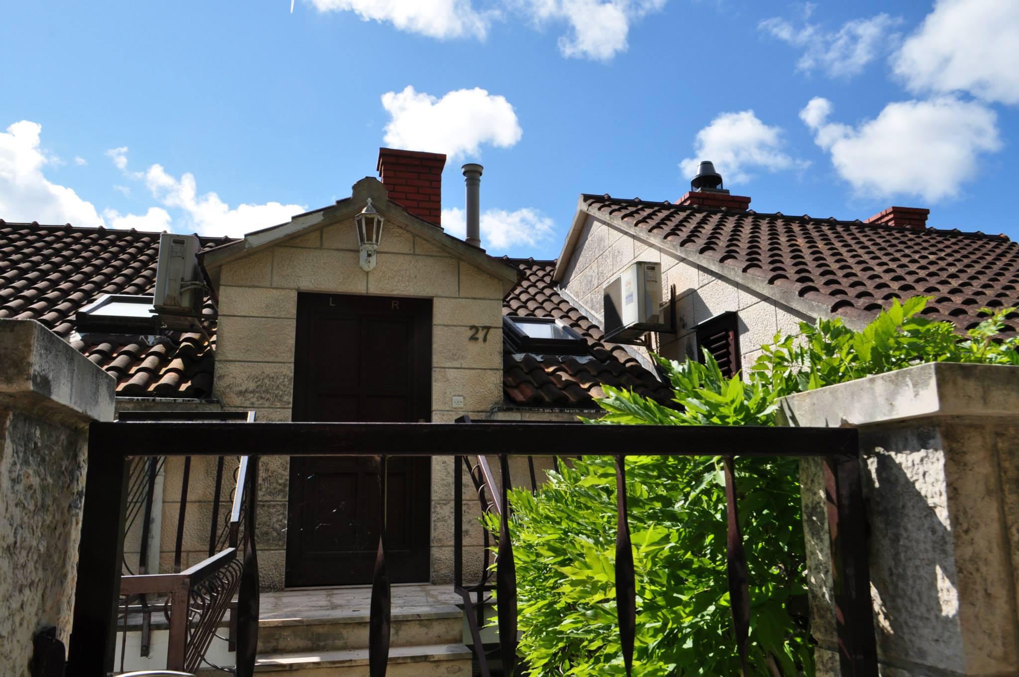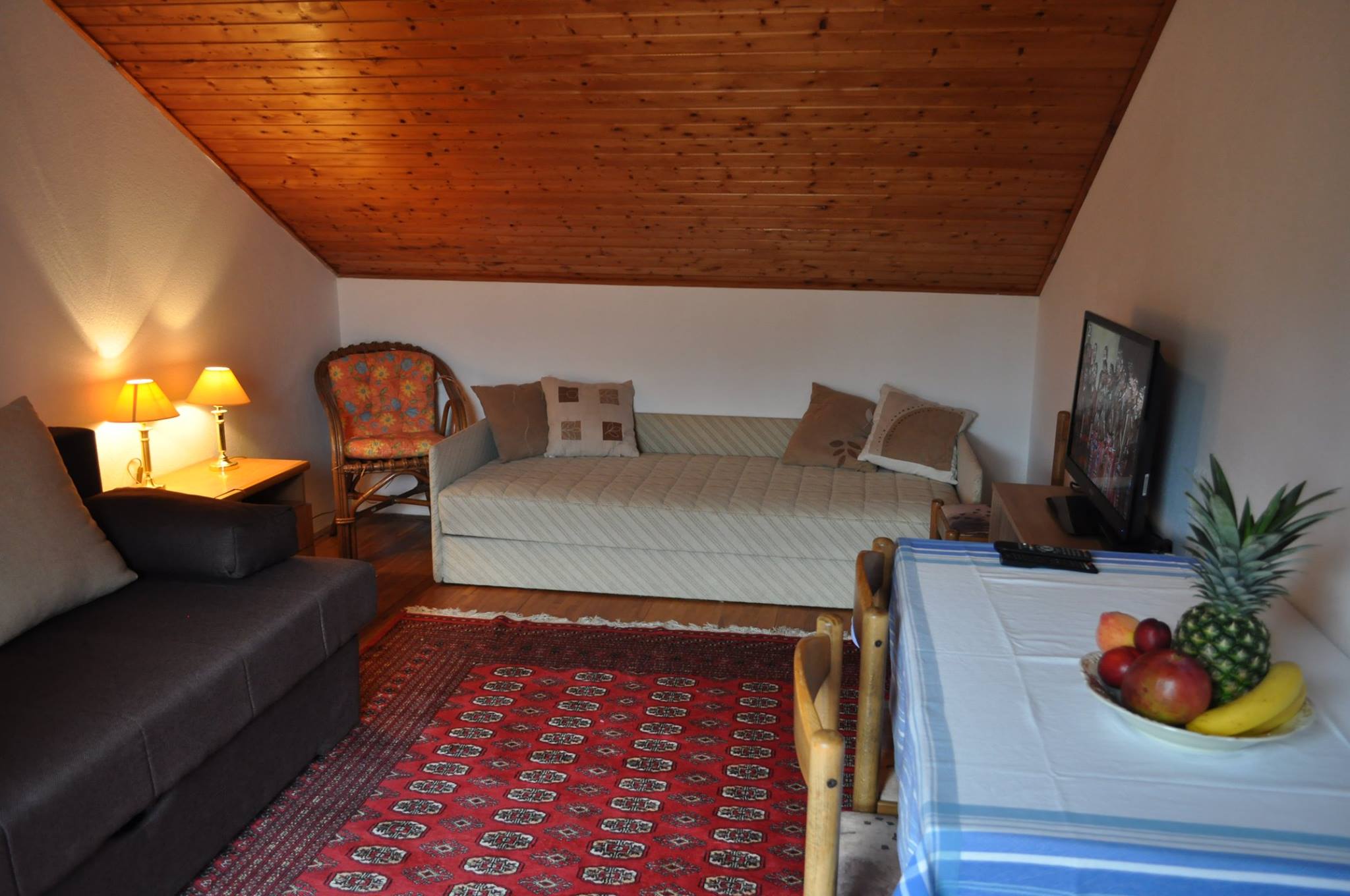 Apartment R in the first house on the second floor with a beautiful semi-round terrace with the view to the sea and with a slanting roof. It consists of two separate rooms, a bedroom with a twin bed and a living room with two beds, a kitchen and a bathroom. The apartment is air-conditioned and is ideal for the accommodation of 4-5 persons.
